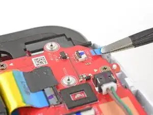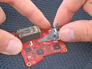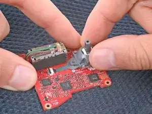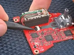 Используйте отвертку Phillips #00, чтобы выкрутить два винта длиной 3,4 мм, крепящие джойстик.