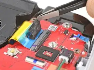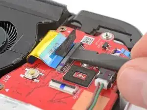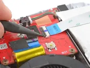 Используйте острый конец лопатки, чтобы приподнять защёлку замка на ZIF‑разъёме кабеля джойстика.