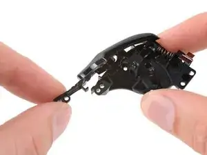 Разместите плоский конец лопаточки на внутреннем крае левой защёлки курка.