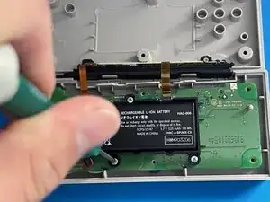 Используйте крестовую отвертку Phillips №000, чтобы выкрутить три винта 3.0 мм, удерживающие аккумулятор и его корпус.