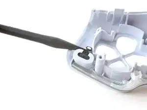 При сборке аккуратно прижмите петлю крепления кнопки лопаткой обратно к месту крепления.