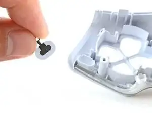 Используя пальцы, оторвите серую накладку кнопок от корпуса рукояти и снимите её.