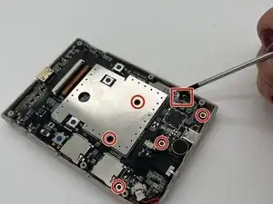 Удалите шесть винтов Phillips диаметром 1 мм, которые крепят материнскую плату к корпусу.