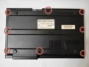 Снимите восемь винтов Phillips #1 длиной 15 мм с нижней части устройства.