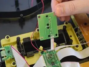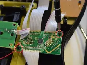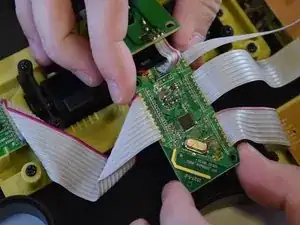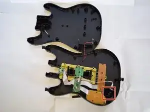 Последний компонент, который необходимо удалить для замены материнской платы, это соединитель корпуса и грифа. Этот соединитель контролирует связь между клавишами гитары и корпусом гитары (струнная панель, диб и т.д.).