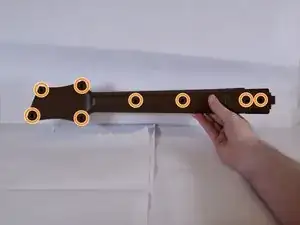 После отделения грифа от корпуса удалите восемь винтов с задней стороны грифа с помощью отвертки Philips 0. Все винты имеют длину 12 мм.