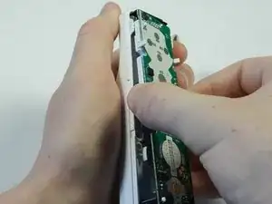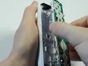 Установка материнской платы контроллера Wii требует снятия передней крышки и обеспечивает доступ к кнопке B.