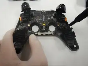 Используйте пластиковый инструмент для вскрытия, чтобы открыть заднюю рамку контроллера.