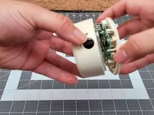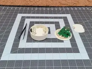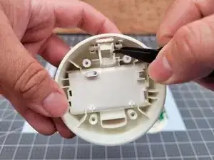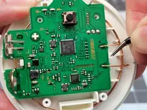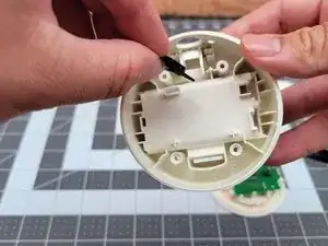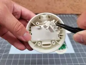 С помощью пинцета снимите полупрозрачную пластиковую деталь, поддев её и подняв вверх с штыря.