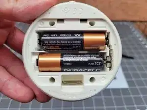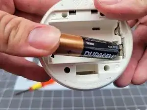Извлеките батарейки, сдвинув положительный контакт в сторону отрицательного и поддев их одним пальцем.