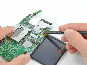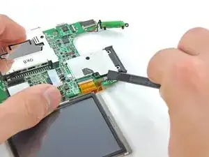 Подденьте медленно, чтобы ослабить плату SD от экрана радиопомех (RF-экрана) под ней. Если поддевать слишком быстро, вы можете порвать экран или оторвать его паяные контакты.