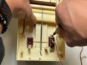 Удалите два винта Philips длиной 13,8 мм, которые крепят выключатель питания.