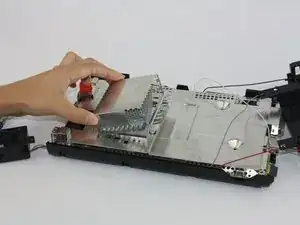 На нижней части консоли под ранее снятой лицевой панелью удалите три винта Tri-wing Y1 длиной 13,2 мм.