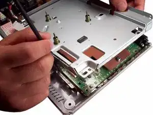 Поднимите материнскую плату из корпуса PlayStation и замените её на новую материнскую плату.