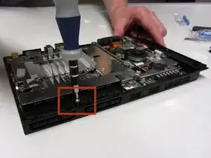 Снимите винт 2,4 мм, расположенный между портами контроллеров, крестовой отверткой #1.