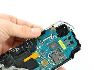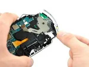 Поднимите аналоговый стик из PSP 300xc, отключая ленточный кабель при его извлечении.