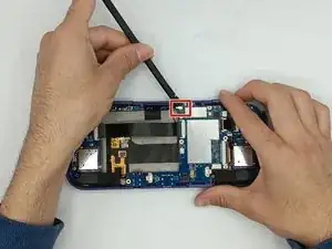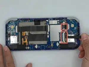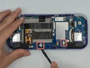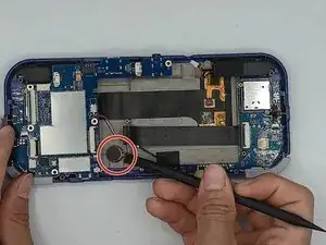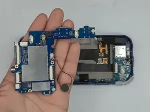 Начните поднимать плату, чтобы получить доступ к вибромотору на металлическом корпусе.