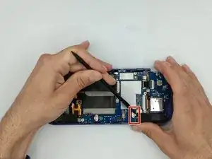 Используйте пластиковый инструмент для вскрытия или лопатку, чтобы отщёлкнуть разъём аккумулятора.