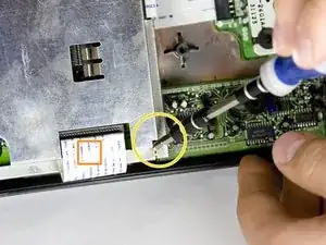 Снимите два винта, крепящие разъем Genesis к остальной части консоли.