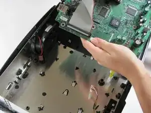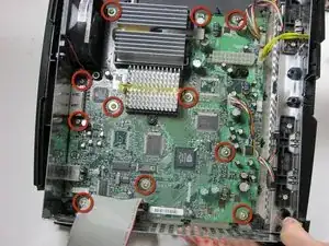 Извлеките материнскую плату из Xbox. Если все винты выкручены, а вентилятор отключён, она легко поднимется.