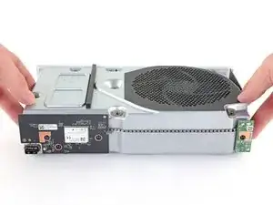 Расположив нижнюю часть Xbox перед собой, оттяните два нижне-задних угла пластикового корпуса друг от друга.