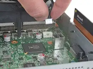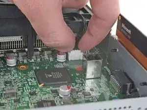 Используйте пальцы, чтобы потянуть и отсоединить разъём вентилятора от его гнезда на материнской плате.