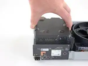 Поднимите блок питания вертикально вверх, чтобы отсоединить его от материнской платы.
