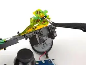 При сборке заново подключите кабель так, чтобы его синяя язычок была обращена наружу контроллера.