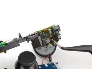 Отожмите кнопку L2 от средней рамки и снимите её, следя за тем, чтобы не потерять маленькую пружину с внутреннего штифта.