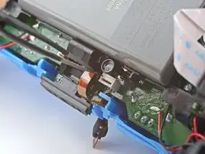 Остроконечным концом лопатки подденьте нижний микрофон в его держателе рядом с аккумулятором.