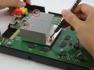 Используя отвертку Phillips #1, выкрутите 4 винта, крепящие радиатор к материнской плате, и снимите радиатор.