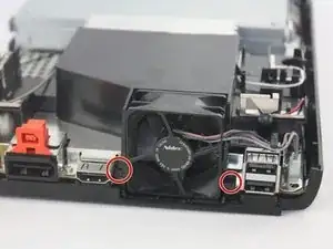 Снимите вентилятор с помощью отвертки Phillips #1, открутив по два крепёжных винта с обеих сторон вентилятора. Провода вентилятора останутся подключёнными к плате, так как он закреплён постоянно.