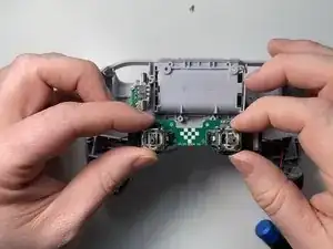 Хватаясь за аналоговые стики, вытяните плату.