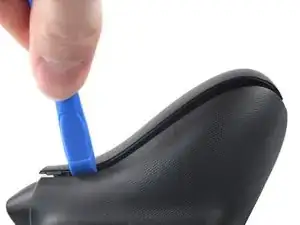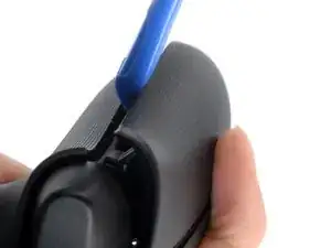 Проведите монтажным инструментом вдоль внутреннего края левой накладки ручки и периодически поддёргивайте, чтобы освободить пластиковые защёлки.
