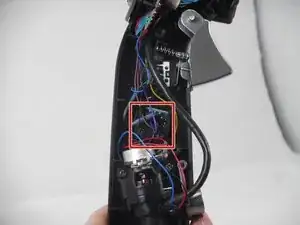 Аккуратно извлекайте блок, так как провода подключены к печатным платам в джойстике.