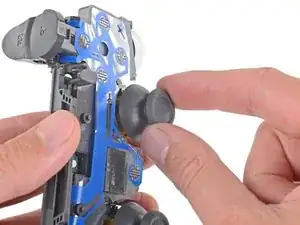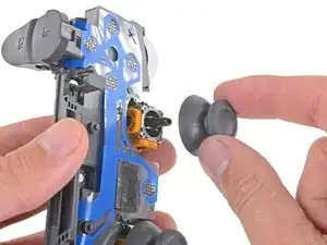 При сборке убедитесь, что новые накладки джойстиков правильно соосны с валами модулей джойстиков, прежде чем надавить их на место.