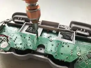 Переверните плату так, чтобы аналоговые стики оказались вверх. Положите её над контроллером.