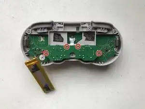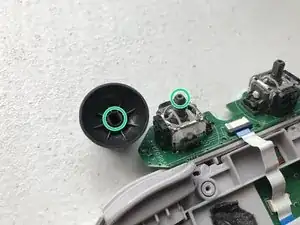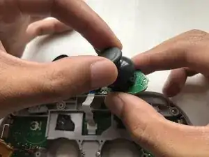 Держите узел платы аналогов за края и аккуратно поочерёдно вытяните старые наконечники аналоговых стиков.