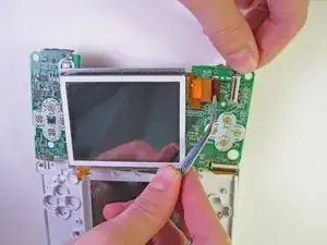 С помощью пластикового инструмента для открытия аккуратно начните отделять материнскую плату от остальной части устройства.