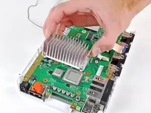 Поднимите кожух вентилятора с радиатора и снимите его с Wii.