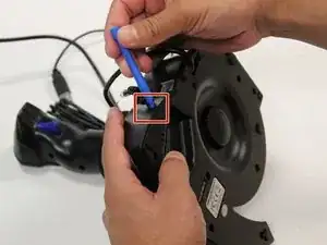 Вам необходимо снять нижнюю панель, чтобы получить доступ к внутренностям джойстика.