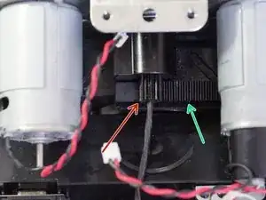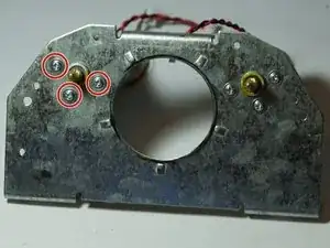 Разверните устройство другой стороной и открутите три винта, крепящих самый левый двигатель к металлической основе, с помощью крестовой отвёртки №1.