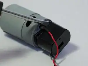 На этом изображении оптический энкодер прикреплён к правому двигателю. Сверху он закрыт чёрным пластиковым кожухом для защиты.