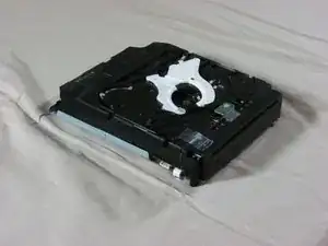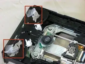 Действуйте осторожно. Внутри оптического привода есть свободные детали. Рекомендуем зафиксировать эти части скотчем.