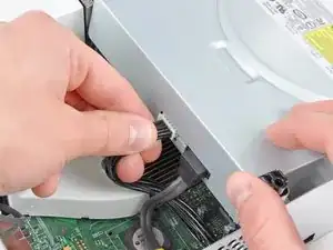 Возьмитесь за силовой разъём за проводами и потяните его прямо из гнезда на оптическом приводе.