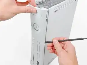 Эту операцию также можно выполнить краем инструмента для вскрытия Xbox 360, но он может поцарапать пластиковый корпус.