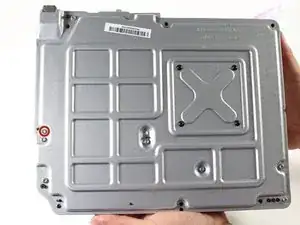 Снимите чёрный плоский винт Torx с нижней части оптического привода.