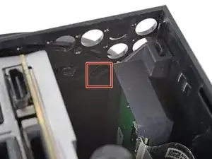 К защёлке можно получить доступ через вентиляционные отверстия на задней панели Xbox, но может понадобиться фонарик. В качестве альтернативы вы можете снять заднюю панель для более лёгкого доступа.