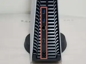 Переверните консоль PS5 так, чтобы задние разъёмы были обращены к вам.