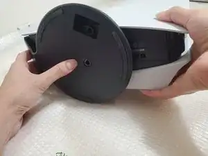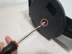 Снимите подставку PS5 с консоли, отвинтив шлицевый винт внизу подставки при помощи шлицевой отвёртки.
